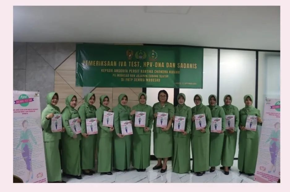 Persit Kartika Chandra Kirana Ranting 3 Disadaad Cabang IV Slogad PG Mabesad mengikutin kegiatan Pemeriksaan IVA Test, HPV DNA, dan SADANIS bertempat di FTKP Denma Mabesad Jakarta pada tanggal 2 September 2024.