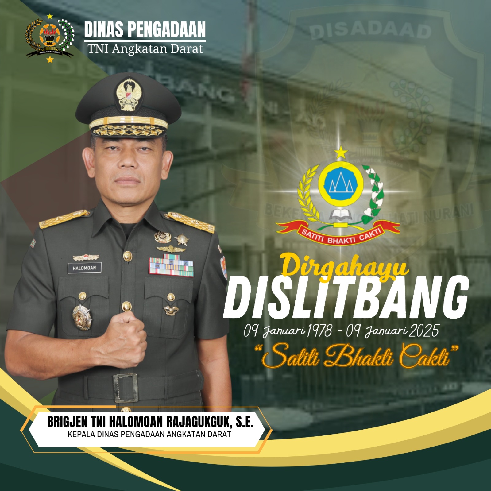 Kadisadaad Brigjen TNI Hari Pahlawantoro. Beserta Seluruh Keluarga Besar Dinas Pengadaan Angkatan Darat Mengucapkan :